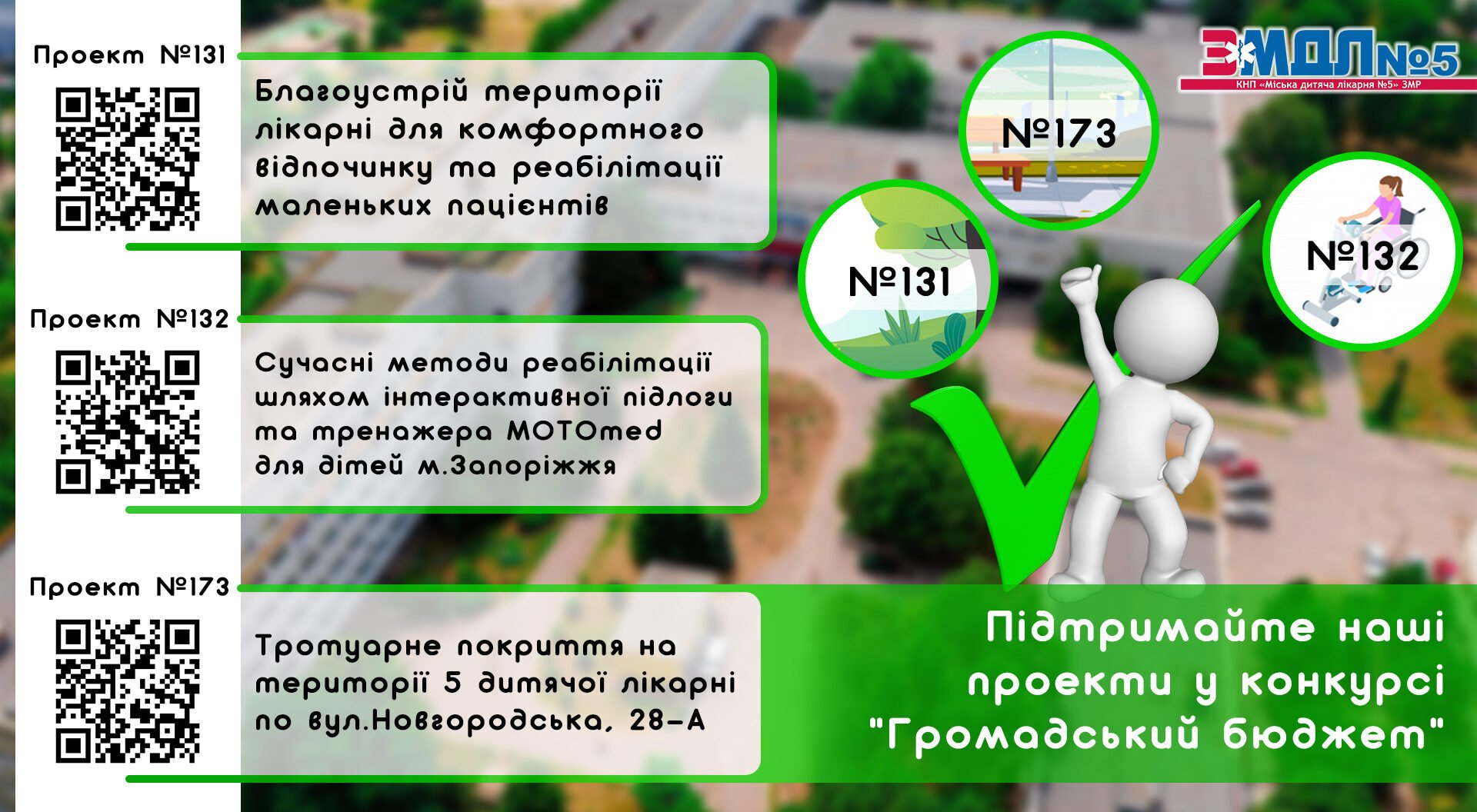 КНП «Міська дитяча лікарня №5» ЗМР традиційно приймає участь в конкурсі «Громадський бюджет м. Запоріжжя – 2021».